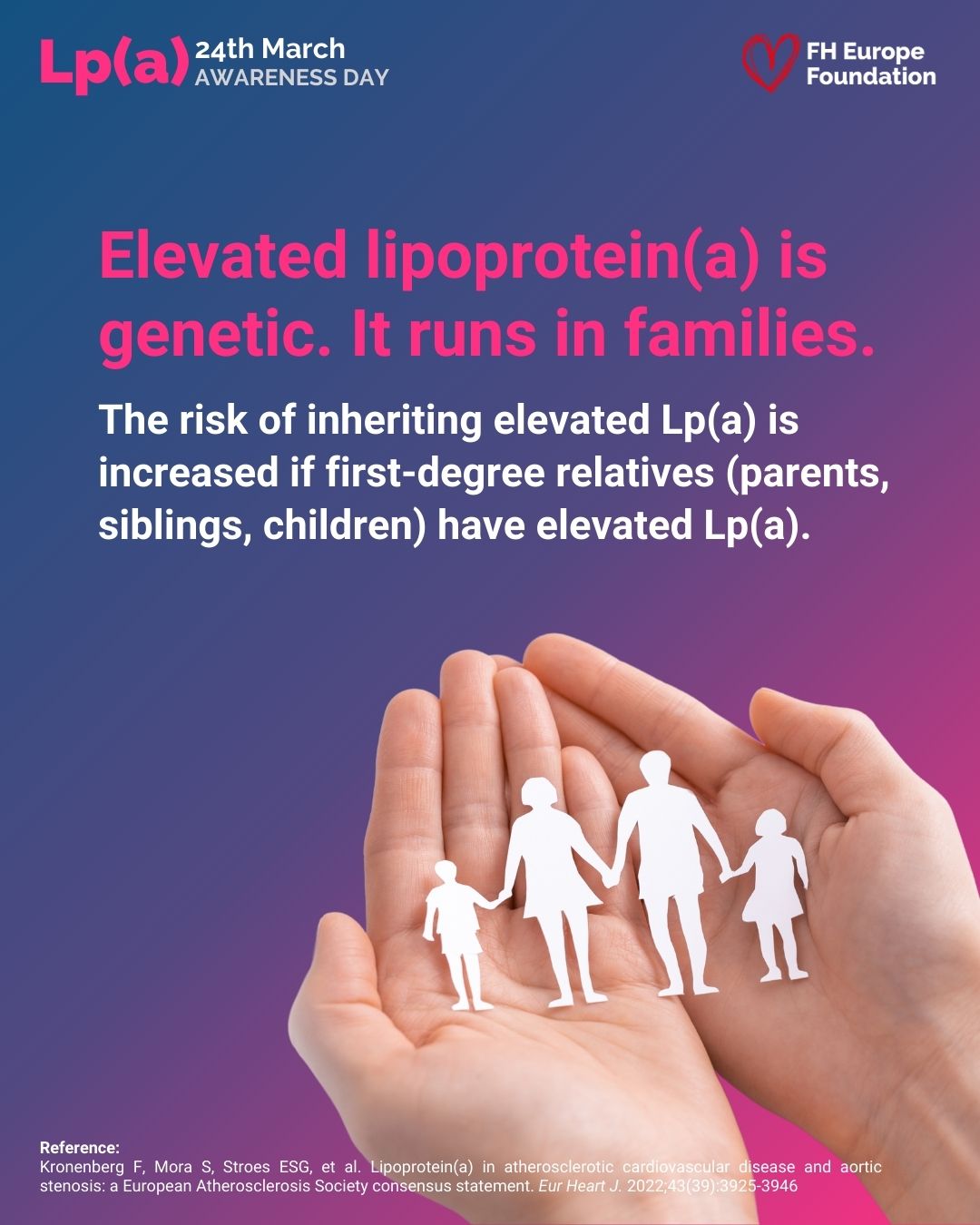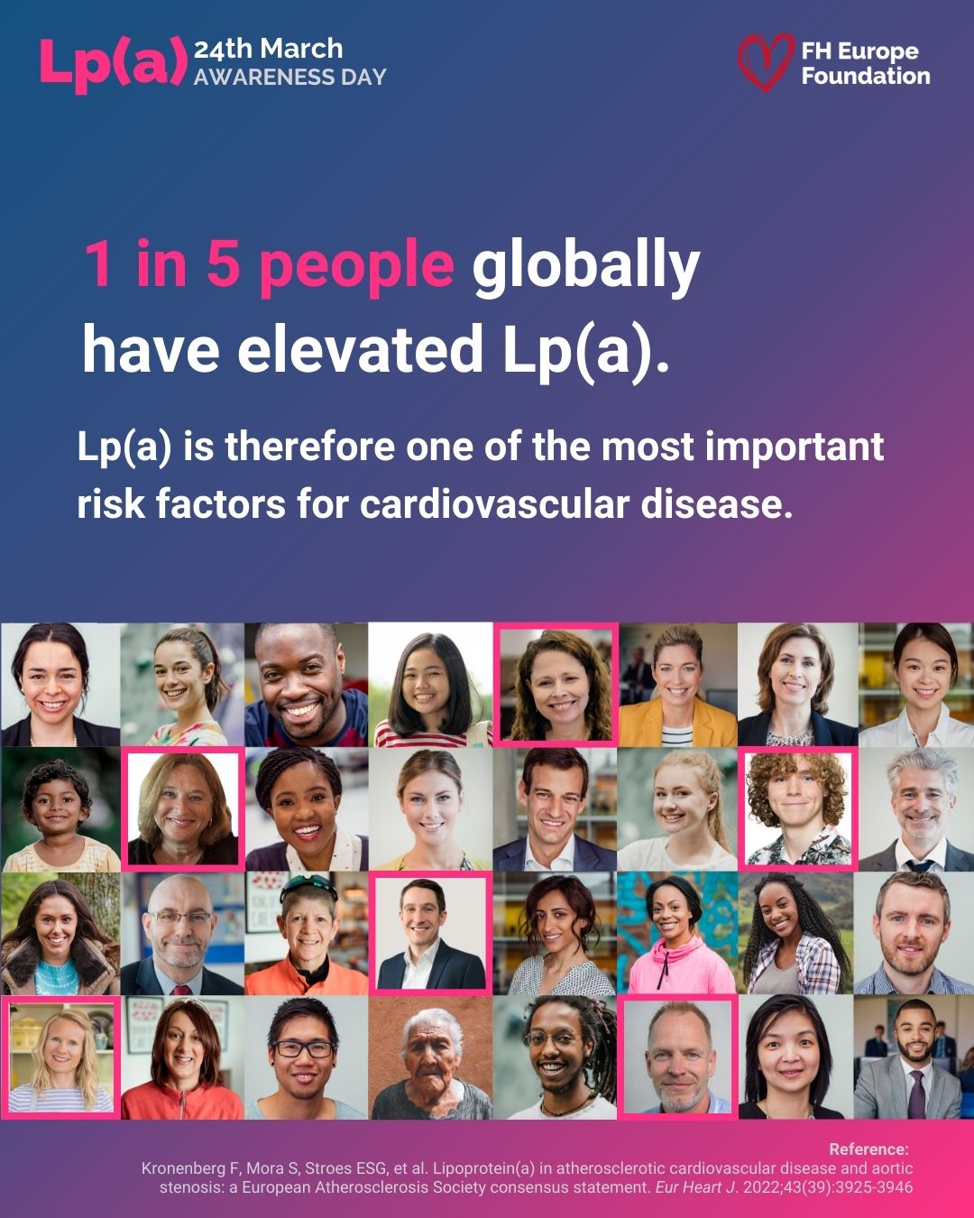 By sharing important information, we can empower all stakeholders to spread the word about high Lp(a) as an under-recognised cause of premature heart disease and stroke. This March we can reach more people at risk for early heart disease and stroke with the third annual Lp(a) Awareness Day. We can make a difference for those who may never have heard of this very common CVD risk factor which runs in families but is undiagnosed in most individuals.