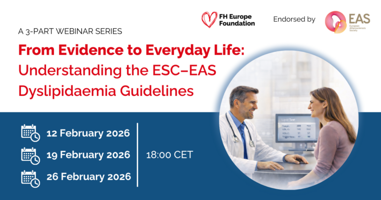 A patient-focused 3-part webinar series Clinical guidelines play a powerful role in shaping how dyslipidaemia is diagnosed and treated. Yet for many patients, caregivers, and advocates, these documents can feel complex or difficult to translate into everyday care. To bridge this gap, the FH Europe Foundation is launching a three-part webinar series in February 2026 “From Evidence to Everyday Life: Understanding the ESC–EAS … Continue reading From Evidence to Everyday Life: Understanding the ESC–EAS Dyslipidaemia Guidelines